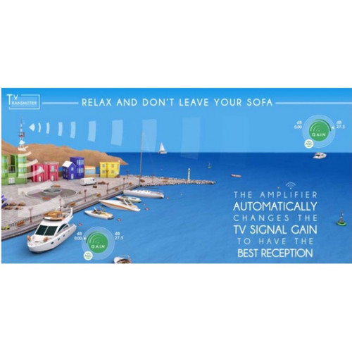 Conventional amplifiers you have to manually adjust the TV signal gain by lowering the amplification when the signal is high and by increasing the amplification when the boat is at sea and far from the TV transmitter. The new Nashira AGC, everything will happen automatically and the innovative amplifier can be placed in a hidden location inside the boat.