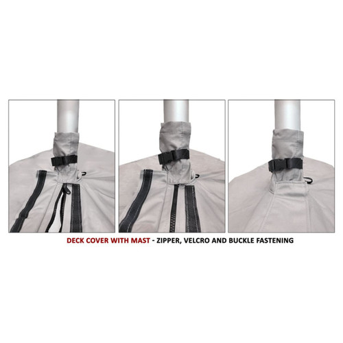 Engineered for ease of use and longevity, the cover includes double-lapped reinforced seams, webbing straps, adjustable buckles, rope and cleats, ensuring a tight and secure fit even during travel. The dirt-repellent surface makes cleaning effortless.