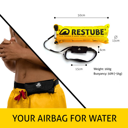 The Restube Beach is the ultimate safety companion for family beach days. Compact and lightweight, it’s as essential as sunscreen—offering peace of mind for adults and kids alike. Perfect for swimming, snorkeling, or paddling, it’s easy to wear and even easier to use. Simply pull the cord to inflate the buoy instantly, or inflate manually via the mouth valve.