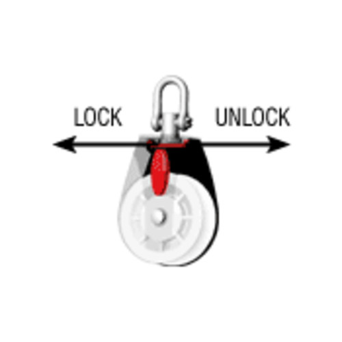 All purpose (AP) blocks are a great all around solution. Self-lubricating Acetal polymer sheaves running on polished stainless steel races perform equally well with dynamic loads and high static loads. For durability and a long service life, these blocks are the right choice for sheets, halyards and control line applications for cruising and racing. Captive Lock™ universal head can be fixed in either of two planes, or free to swivel as required. Quick adjusting cleat arms require no tools to adjust and fix securely in position. Becket pin is removable so line can be spliced prior to fitting.